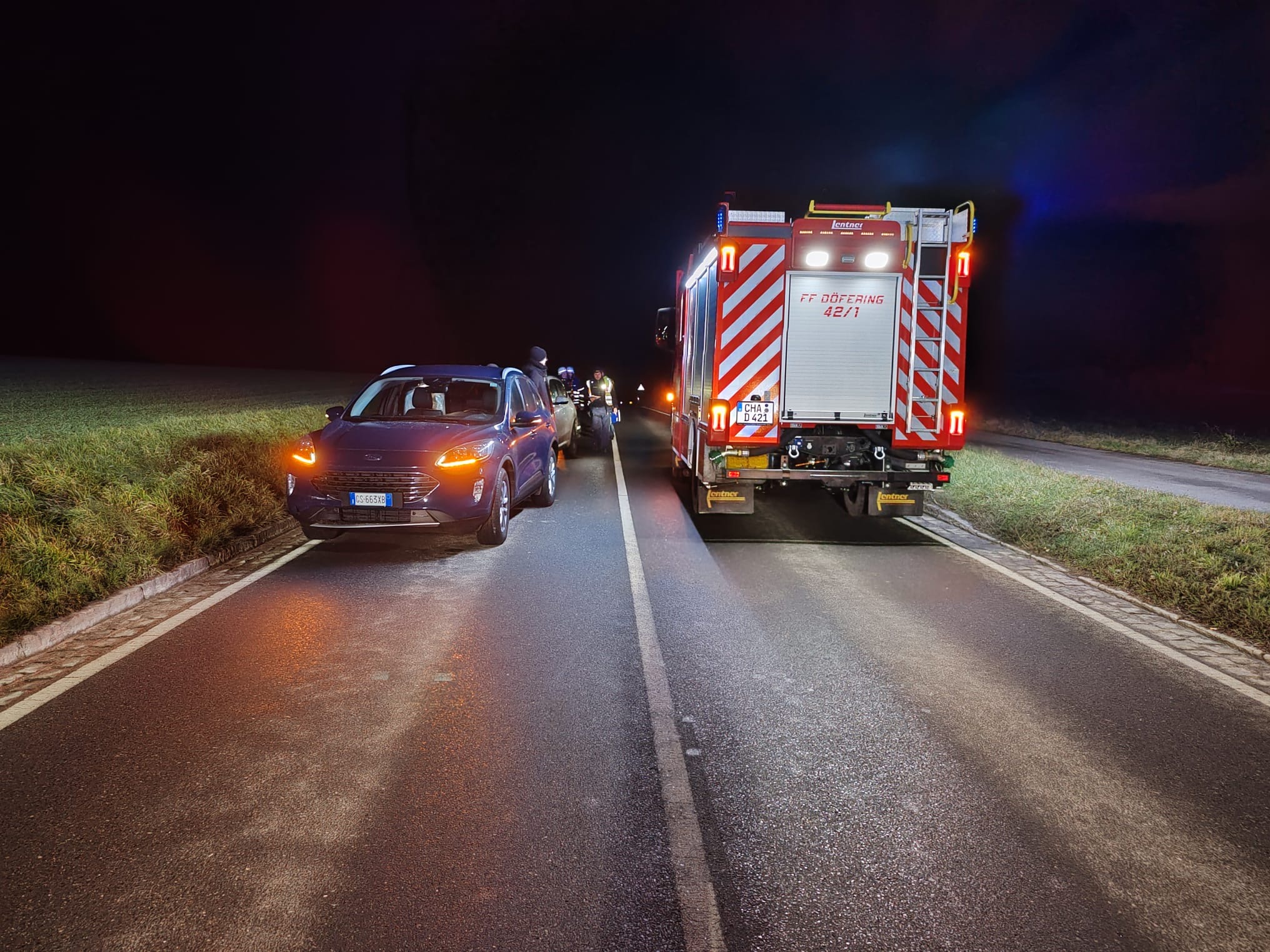 Bei dem Auffahrunfall mit drei beteiligten PKW Fahrzeugen hatte die örtliche Wehr 10 Mann im Einsatz. Ein LKW der aus Geigant kam, musste ausweichen und dann kam der Auffahr-Unfall zustande. Es musste die Staatsstraße zwischen Geigant und Katzbach zeitweise mit einer Vollsperre belegt werden. Beteiligt waren neben Katzbach auch die FFW Geigant und die FFW Döfering. Sie wurden alarmiert wegen mehrer beteiligter Fahrzeuge. Gott sei Dank ist kein Personenschaden entstanden.