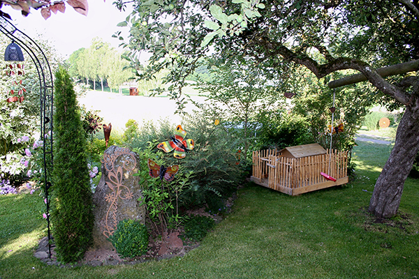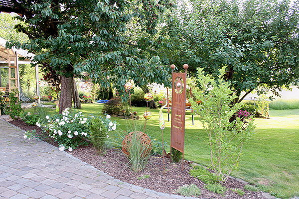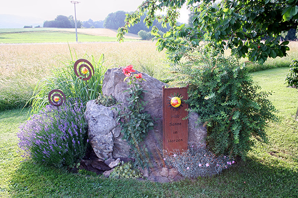 Die Familie ist mit ihrer Gartenpracht beileibe nicht allein im Dorf. Bereits vor ca. 15 Jahren präsentierte sich im Rahmen der offenen Gartentür der Weberhof in Katzbach, Hausnummer 2 mit einem wunderschönen Garten.