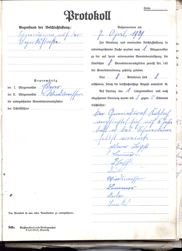 Für das Jahr 1928/1929 wird eine Bezirksumlage von 230 % erhoben