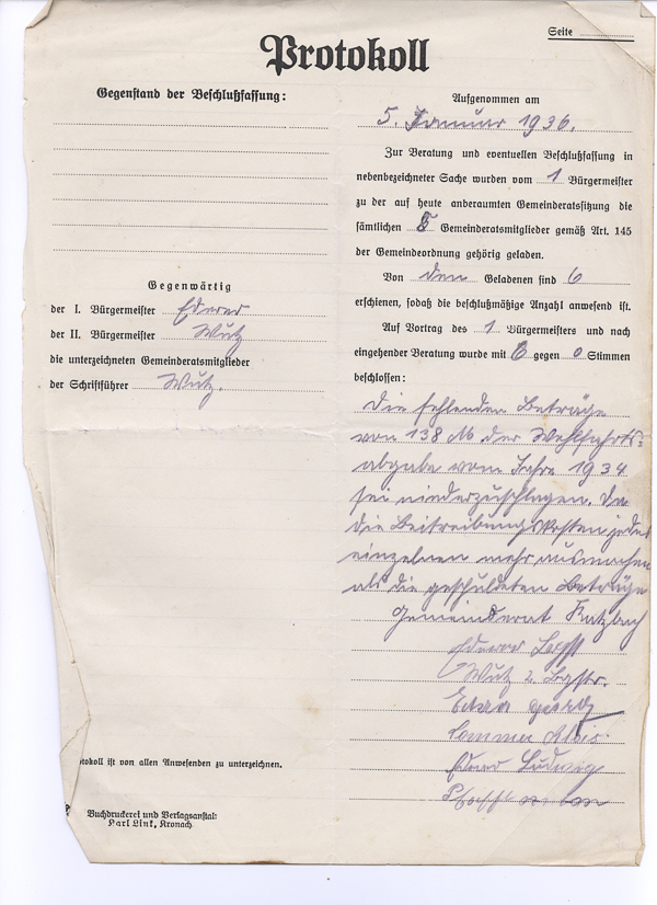 Die fehlenden Beträge von 138 Mark der Wohlfahrtsabgabe vom Jahre 1934 sind niederzuschlagen da die Beitreibungskosten  jedes einzelnen mehr ausmachen als die geschuldeten Beträge