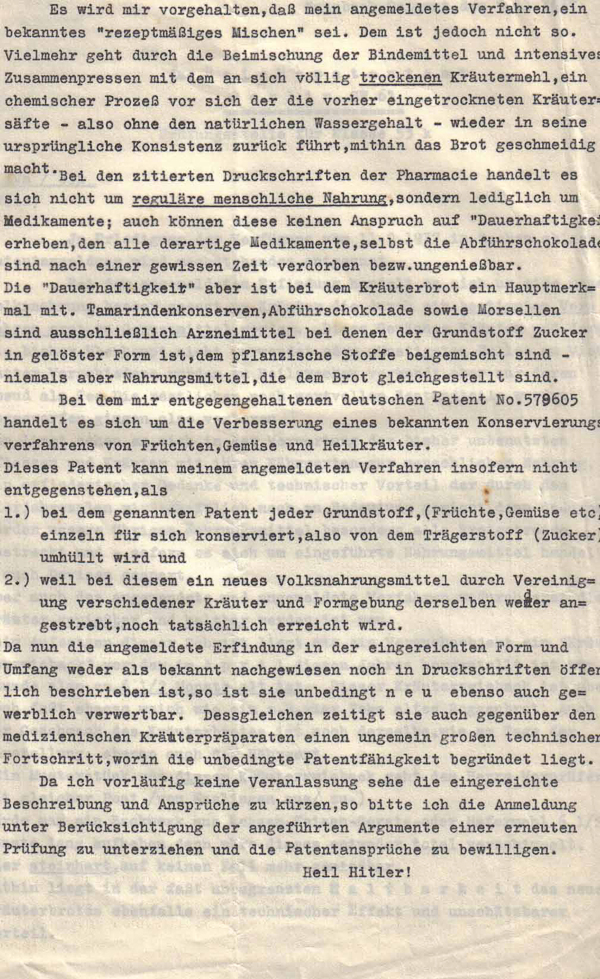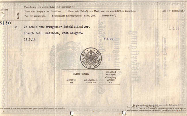 Das Reichspatentamt in Berlin machte immer wieder neue Einwände geltend und der Schriftverkehr zog sich über 2 Jahre hin.
