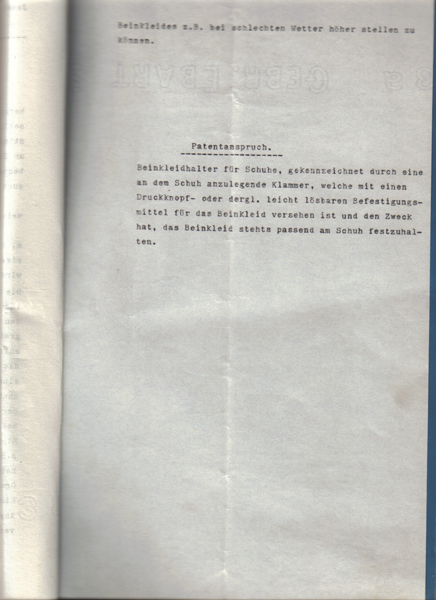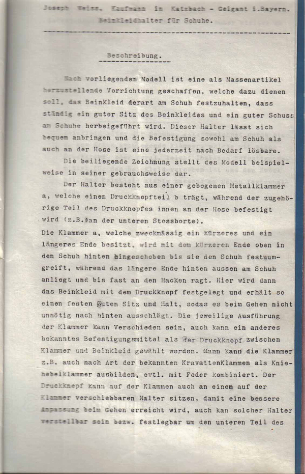 Die Erfindung eines Beinkleidhalters bzw. Hosenschoners beschäftigte den Erfinder das ganze Jahr 1914.