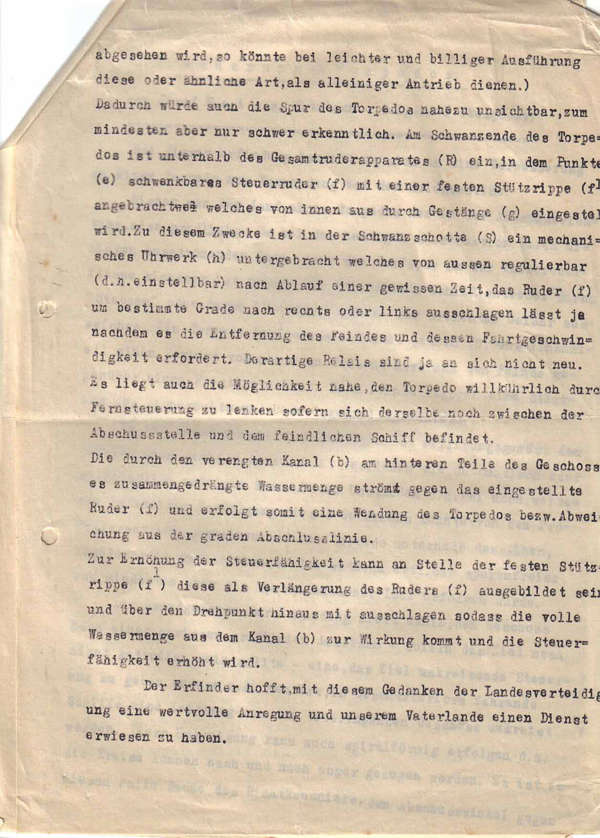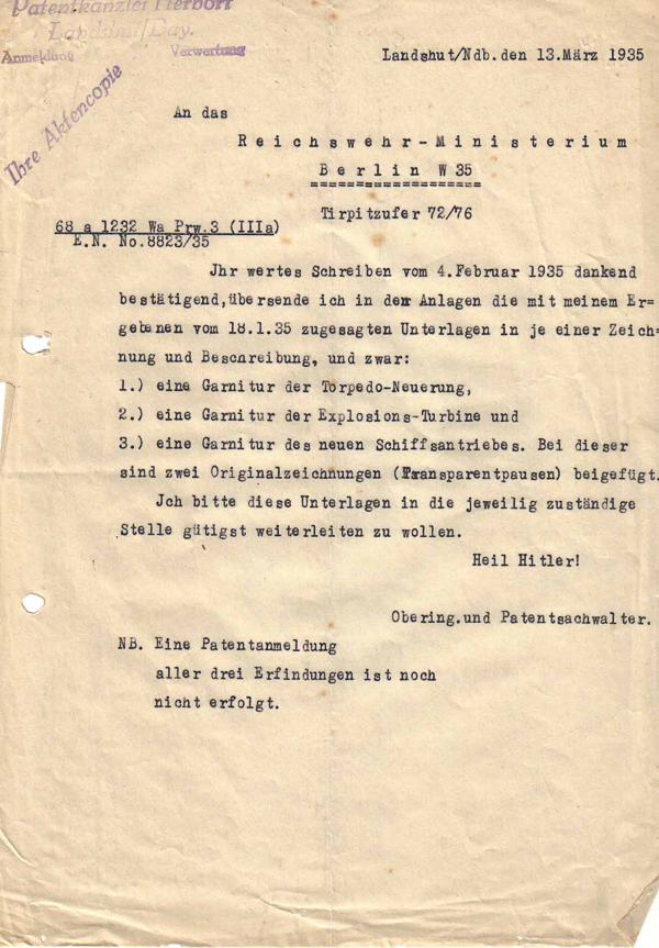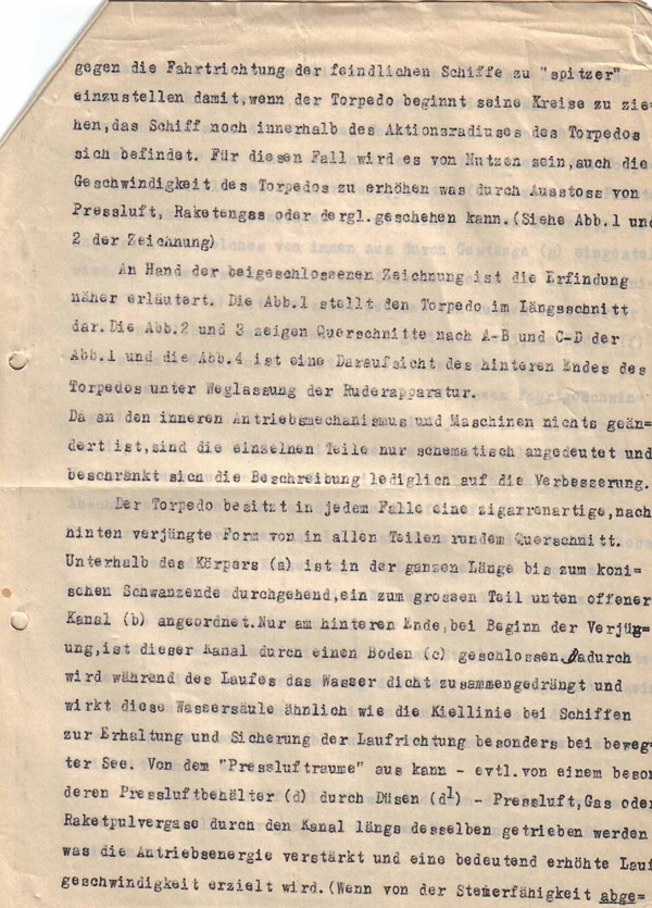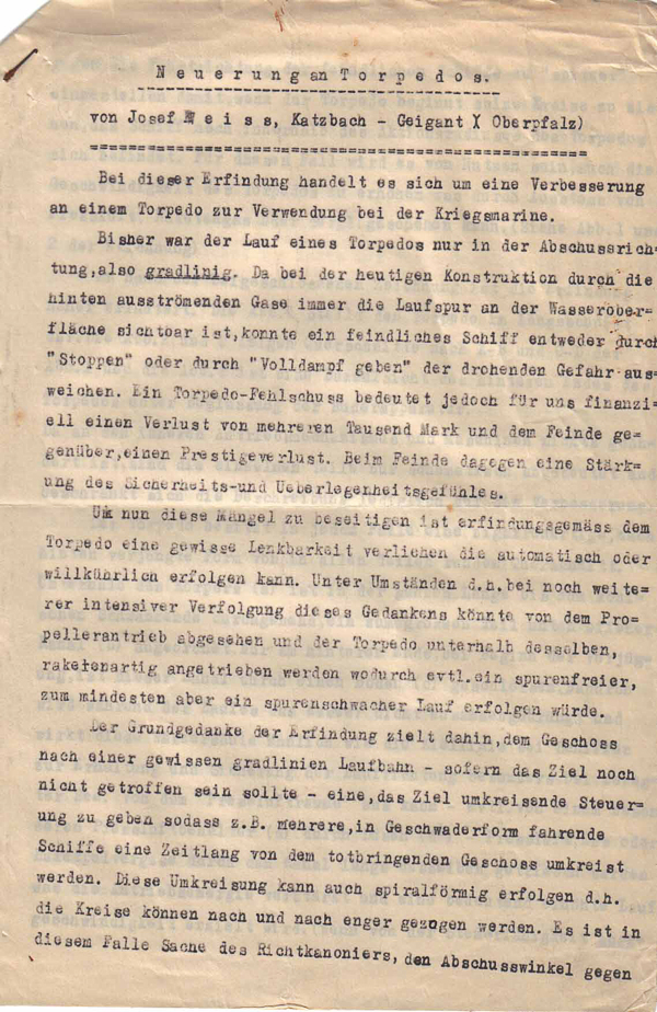 Verbesserung an einem Torpedo zur Verwendung bei der Kriegsmarine – Jahr 1935
