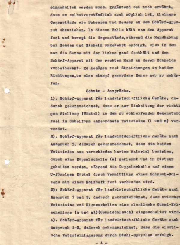 Josef Weiß kam selbst aus der Landwirtschaft und seine Ablehnung gegenüber dem herkömmlichen Wetzstein dürfte seine Überlegung, einen neuartigen Schärfapparat zu erfinden, beflügelt haben.