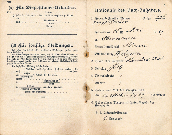 Decker Joseph, Militärpass, Kühnried 1
