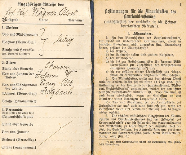 Militärpass Wagner Alois sen., Katzbach 4