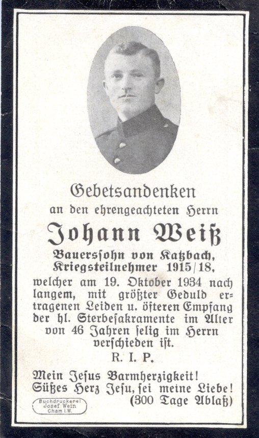 Sterbebild Weiß Johann, Katzbach 8 1/2