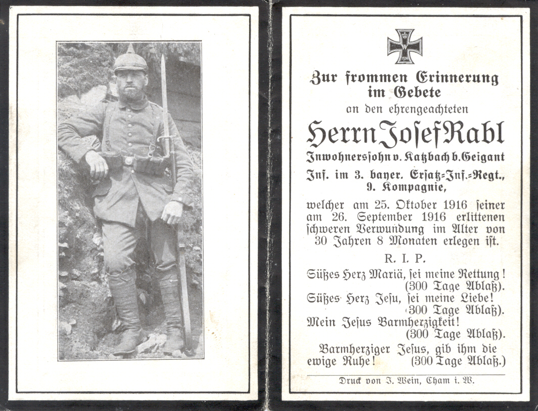 Sterbebild Rabl Josef, Katzbach 15
