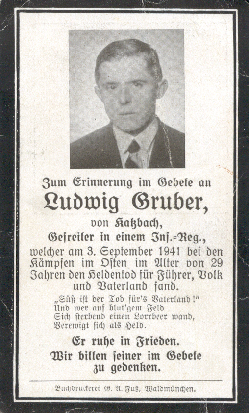 ![]() Gruber Ludwig, Katzbach 9 1/2, Sterbebild