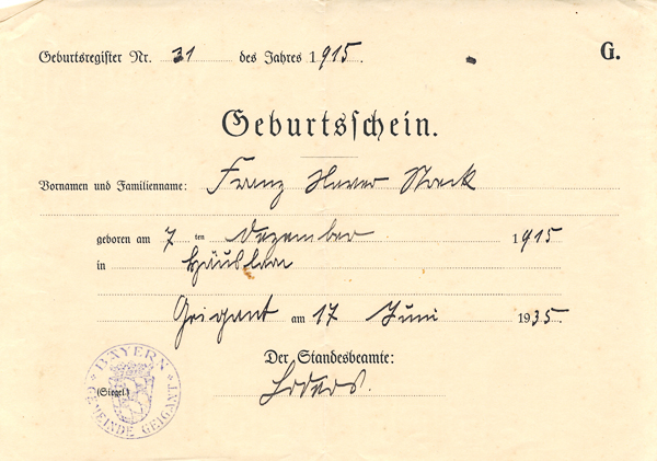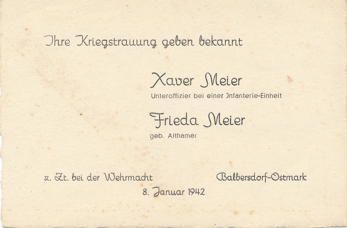 ![]() Kriegstrauung der Eheleute Meier Franz-Xaver und Frieda geb. Altnammer, Katzbach 26