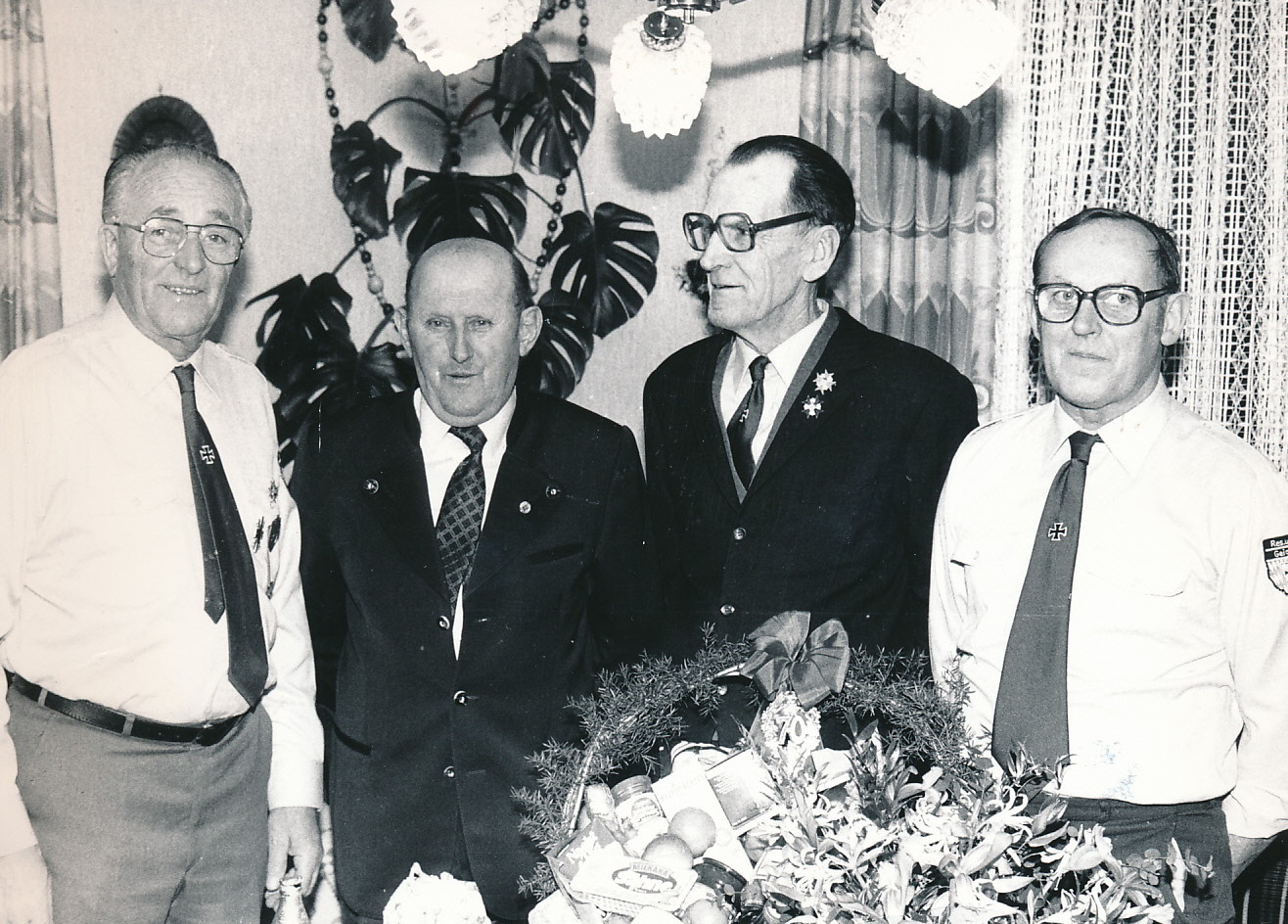 ![]() Die Veteranen von links: Mühlbauer Heinrich Geigant, Meier Franz-Xaver Katzbach, Windmeisser Heinrich Katzbach und Gruber Siegfried Geigant