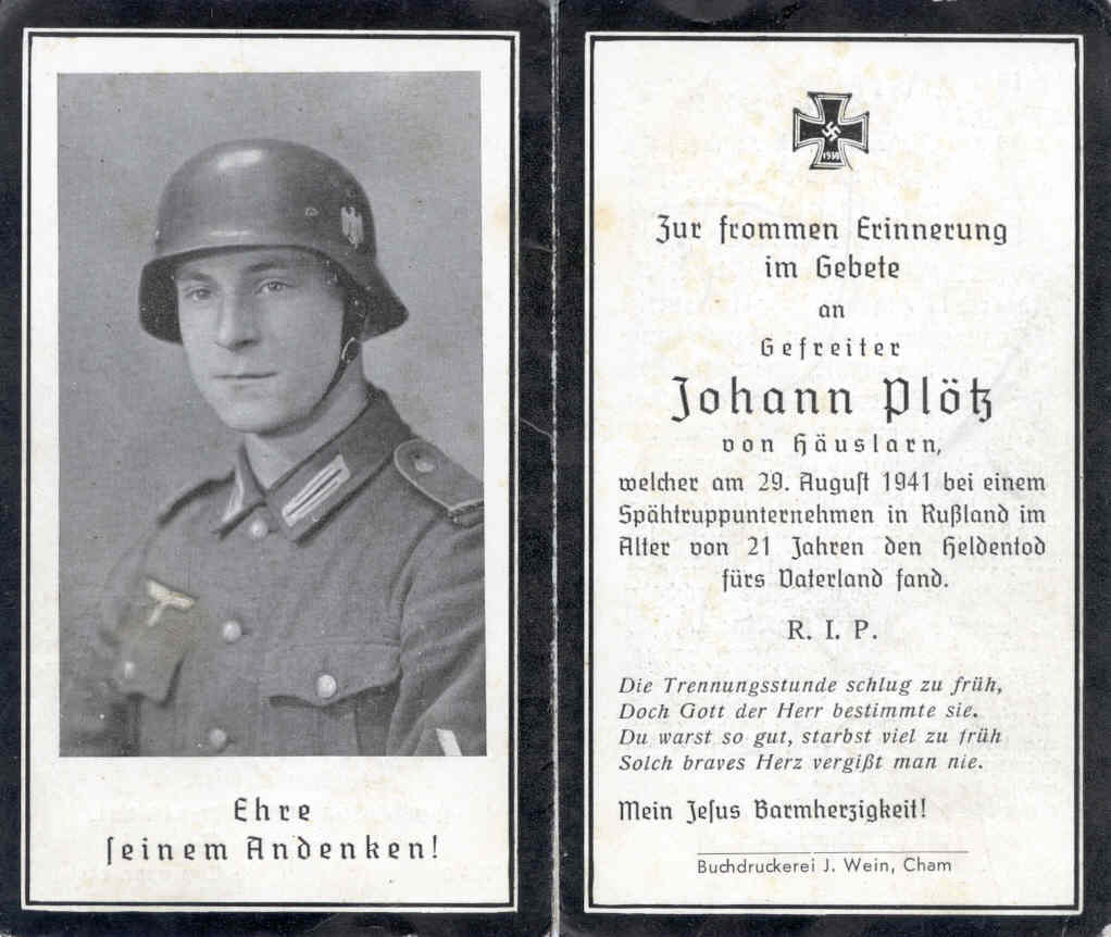 ![]() Plötz Johann, Häuslarn 10, Sterbebild