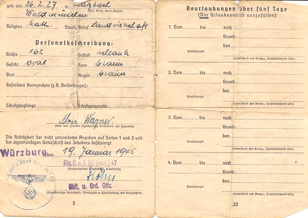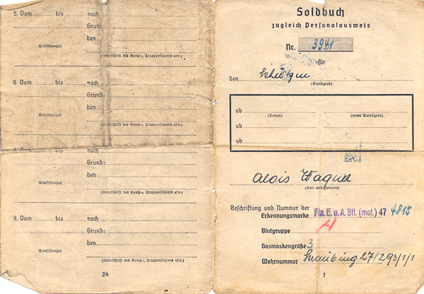 ![]() Soldbuch Wagner Alois, Katzbach 4