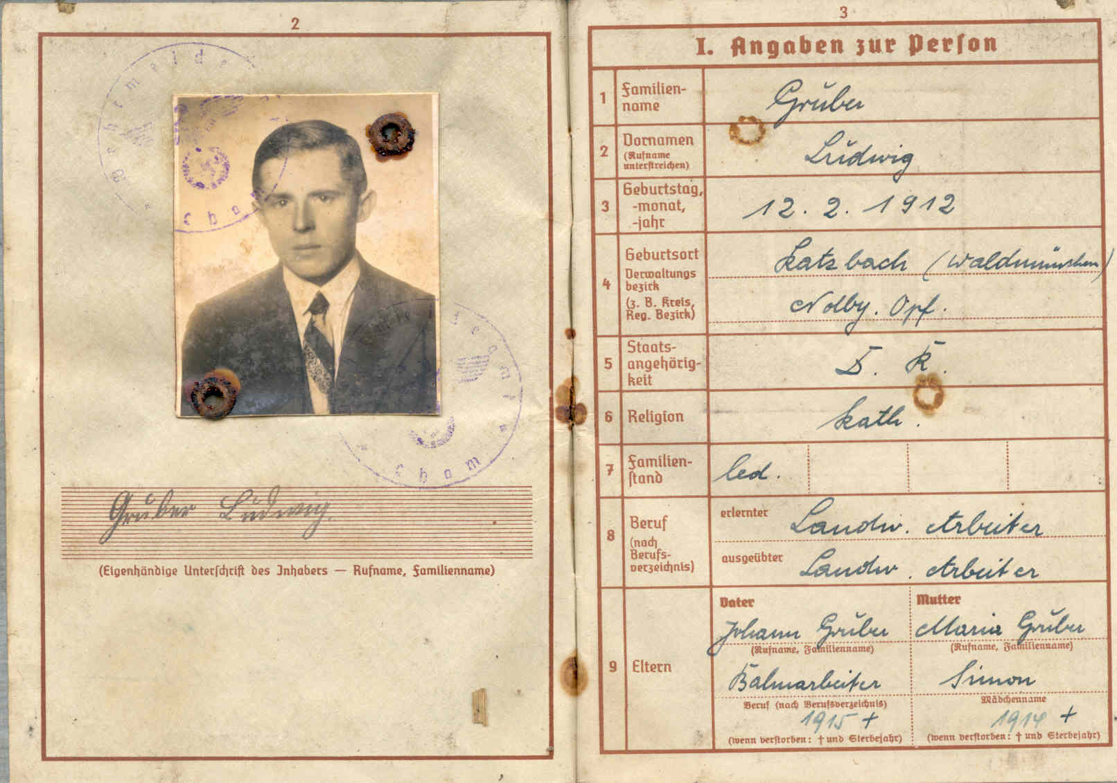 ![]() Gruber Ludwig, Katzbach 9 1/2, Wehrpass