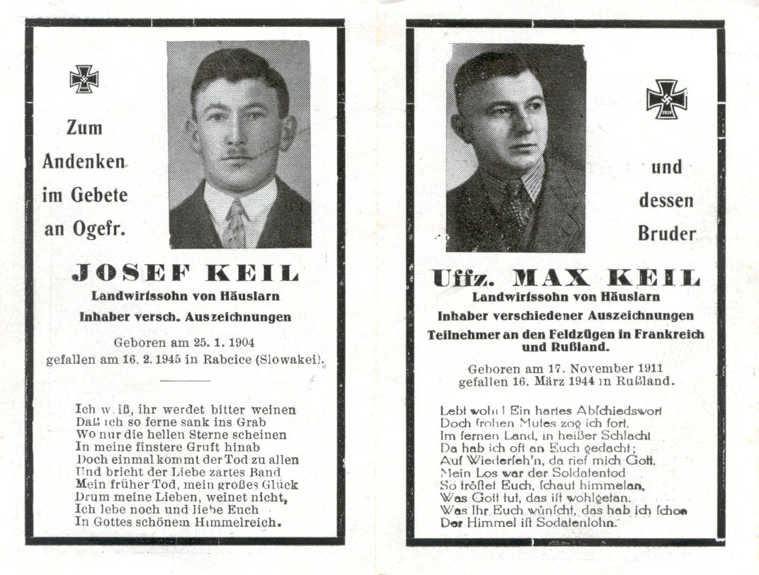 ![]() Keil Josef und Max, Häuslarn 9, Sterbebild