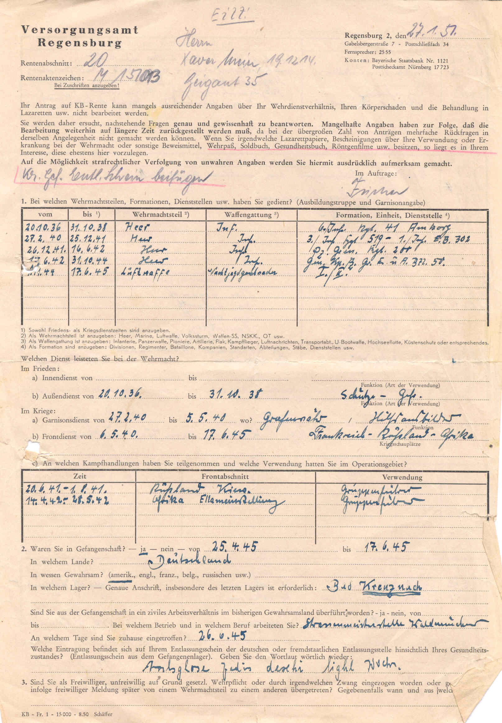 ![]() Schreiben an das Versorgungsamt Meier Xaver, Katzbach 26