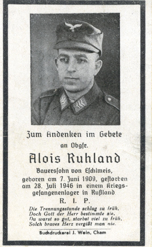 ![]() Ruhland Alois, Eschlmais 2, Sterbebild