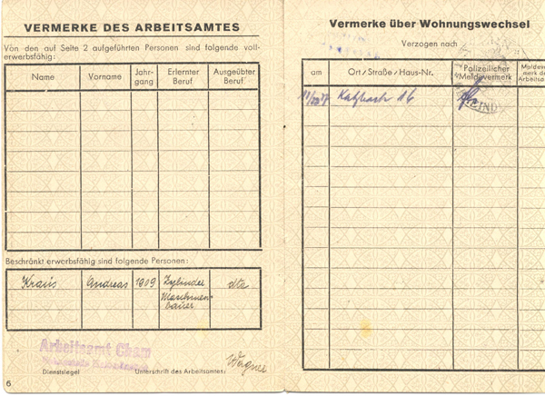 Vermerke Arbeitsamt u. Wohnungswechsel