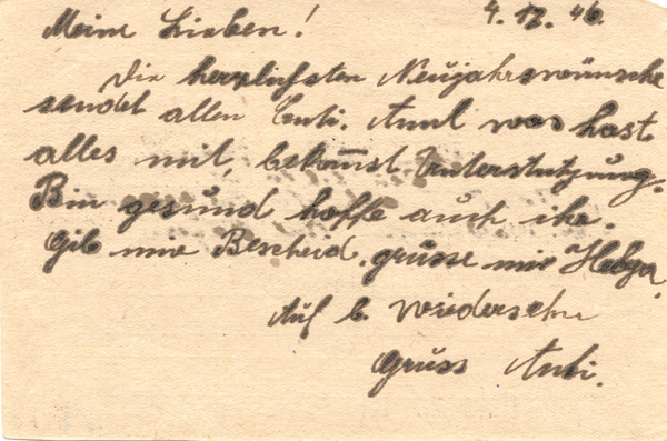 Erste Post vom 4. 12. 1946 aus russischer Gefangenschaft