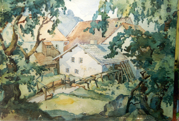 Ein Aquarell, das die Zeiten überdauert hat mit der Signatur "L Paulus 1947". Es ist leider nicht mehr bekannt, ob der Künstler sicher zu den Vertriebenen gezählt hat, aber es ist zu vermuten, er hat auch seinerzeit das Dammernhaus (Weiß Josef) gemalt.