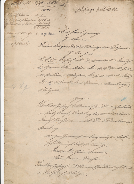 Jedoch hat diese Schlagzeile nichts mit der folgenden Überlieferung zu tun. Es geht hier um die gerichtliche Auseinandersetzung der ehemaligen Eigentümer des Leiglschneider-Anwesens Katzbach, Hausnummer 14 in Katzbach mit dem Eisenbahnfiskus.