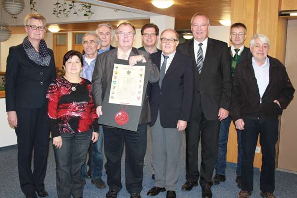 Neubestellung von Josef Ederer als Kreisarchivpfleger im Landkreis Cham durch den Landrat und Bezirkstagspräsidenten Franz Löffler.