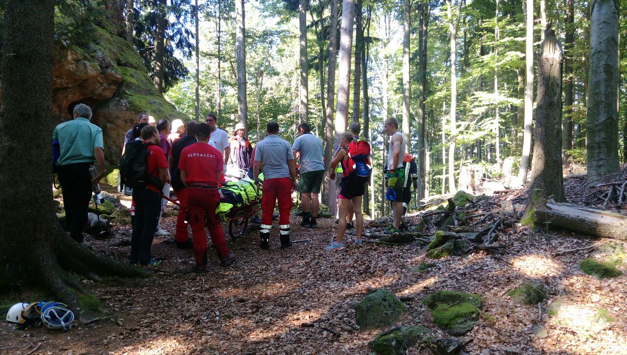 Bei der Bergung im schwierigen Gelände war ein Großaufgebot von Helfern im Einsatz. Vor Ort waren ein Notarzt, Helfer des Bayerischen Roten Kreuzes, Rettungsdienstleiter Michael Daiminger, der den Einsatz koordinierte, KBI Norbert Auerbeck und KBM Christian Bauer, Feuerwehr-Einsatzkräfte aus Geigant und Katzbach sowie die Bergwacht Furth im Wald.