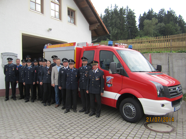 Fahrzeugsegnung in Verbindung mit dem 125-jährigen Gründungsfest am 20. – 22. 6. 2015 Das abgelastete Fahrzeug mit seinen 163 PS ist mit dieser Motorisierung für die weit auseinanderliegenden Weiler und Dörfer in Katzbach bestens geeignet. Es wiegt um 3 Tonnen weniger als das alte Fahrzeug und ist 55 PS stärker, und somit auch schneller und wesentlich schlagkräftiger. Am Montagabend wollten auch Bürgermeister Markus Ackermann und sein Kämmerer Rainer Wagner das neue Löschfahrzeug genau in Augenschein nehmen.
