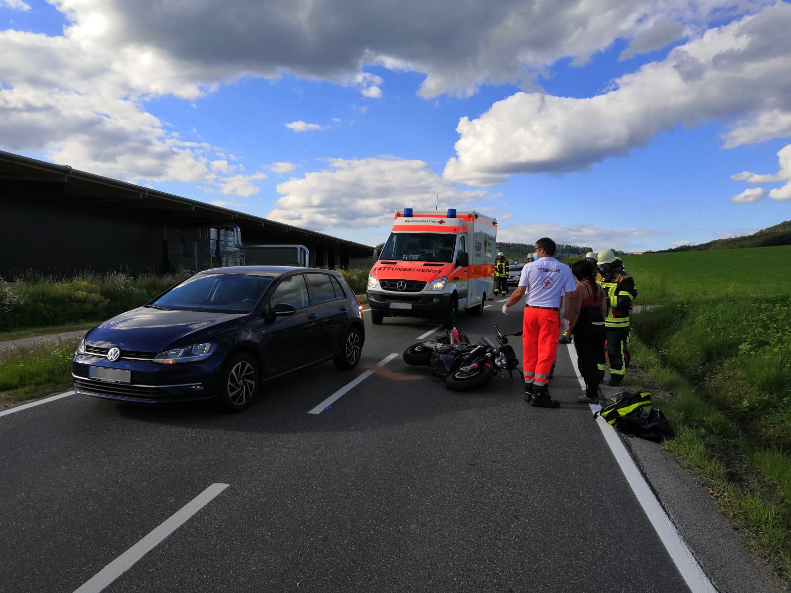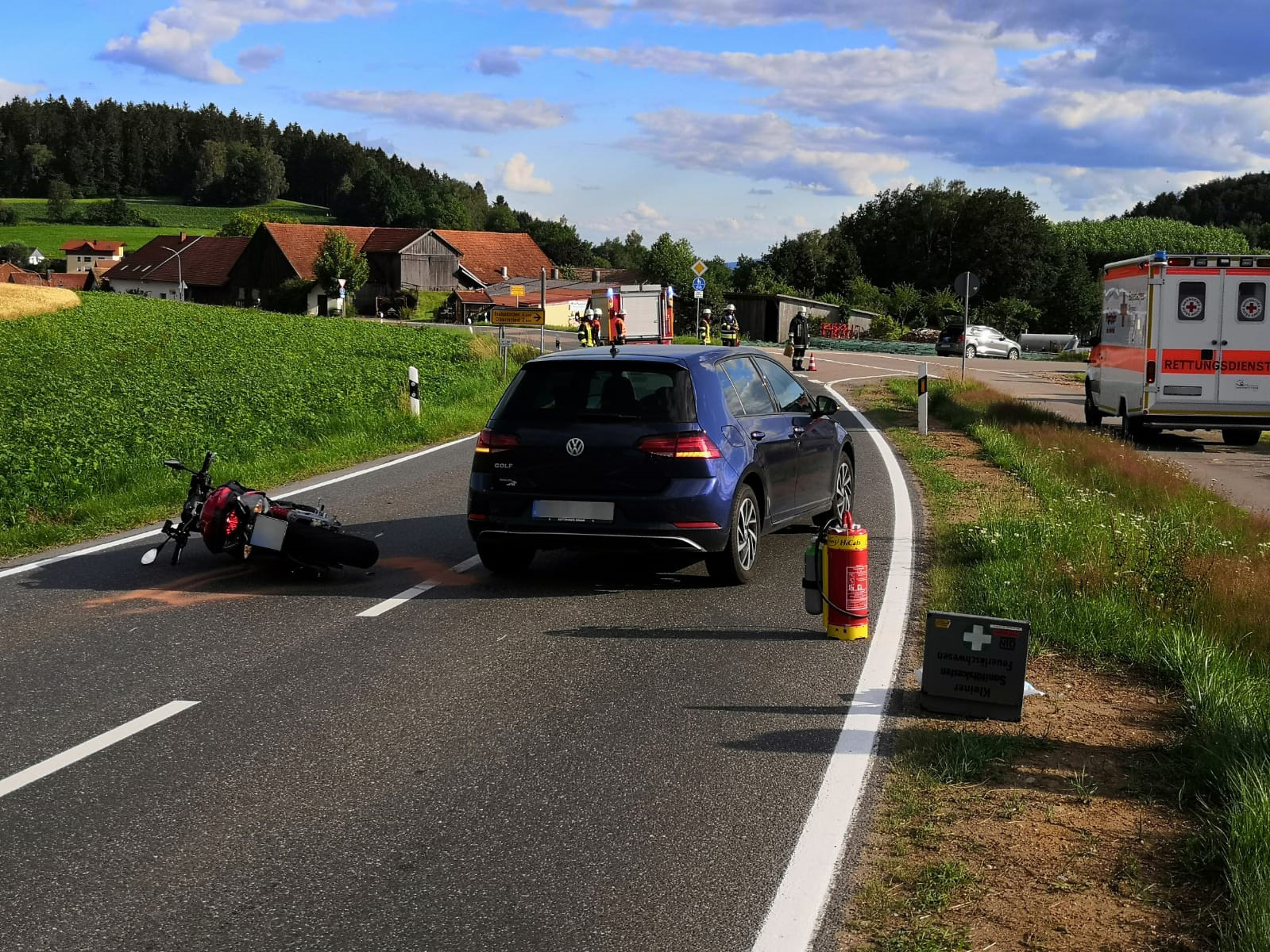 Motorradunfall auf der Kreisstraße neben der Zimmerei Zisler