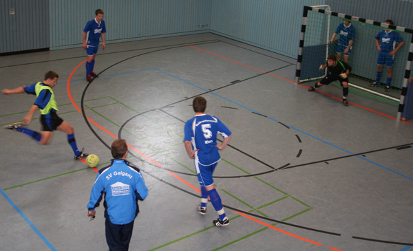 Schwerere Verletzungen blieben auch diesmal aus und die vor zwei Jahren entstandene Idee, Hallenturniere in der Geiganter Mehrzweckhalle auszurichten, bestätigte sich einmal mehr als Volltreffer und war an Dramatik kaum zu überbieten. In der Gruppe A wurde der Kampf in die nächste Runde zu einem wahren Kopf an Kopf Rennen. So trennte die Punktgleichen Mannschaften SG Katzbach, SV Döfering und SV Geigant I nur eine Differenz von zwei Toren. Den Dreikampf um die Tabellenführung gewann dann der Lokalmatador SG Katzbach mit 12 Punkten und 15:7 Toren vor dem SV Döfering (12 Punkte/13:6 Tore). Nur um Haaresbreite verfehlte damit der Sportverein Geigant I (12/11:5) den Einzug ins Halbfinale. Die weiteren Plätze: 4. FC Raindorf (4/5:9), 5. FC Rhan (4/7:13), 6. Wilde Liga Obernried (0/3:14). Den Gruppensieg in der Gruppe B sicherte sich der SV Schönthal (15 Punkte/14:4 Tore) durch seinen Sieg im direkten Vergleich gegen den TSV Pempfling (15/17:6), dicht gefolgt von der SpVgg „De Zwidern-Schlumpf-Club“ (13/10:6). Die weiteren Platzierungen: 4. SV Geigant II (7/6:9), 5. Balbersdorf (6/11:10), 6. SV Geigant B-Jugend (4/7:19), 7. SG Eintracht Sinzendorf/Sportfreunde Hohenstein (1/3:14).