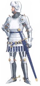 Abb. 19: Lehnart, Ulrich: Kleidung und Waffen der Spätgotik, Teil III 1420 – 1480. Wald-Michelbach 2005, S. 69. Rüstung um 1430