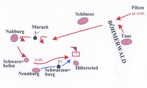 Das heißt, am Montag, dem 21. September, zogen die Böhmen mit ihrer Beute so nahe an Neunburg vorbei, dass man sie von dort aus sehen konnte.
