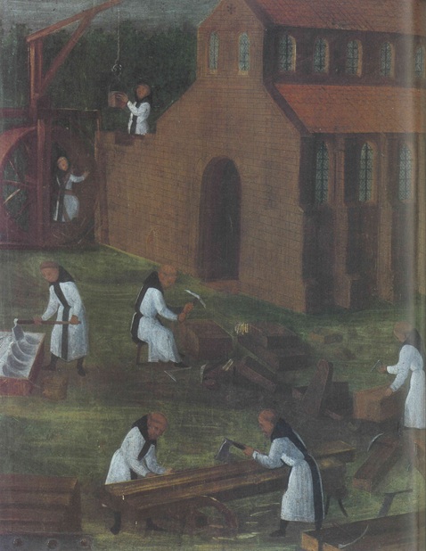 Abb. 3: Die Vorlage für dieses Bild war nicht mehr zu ermitteln. Mönche roden einen Wald und gründen ein Kloster