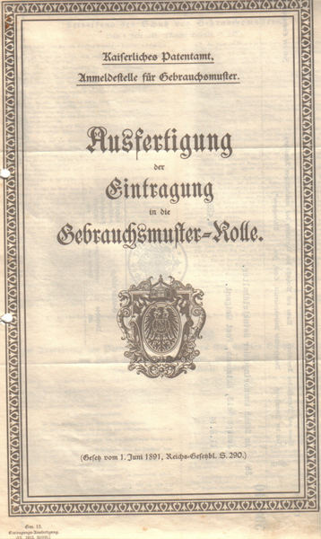 Hier musste er sich lange mit dem Kaiserlichen Patentamt in Berlin herumschlagen, da bereits eine französische Patentschrift mit der gleichen Erfindung vorlag.