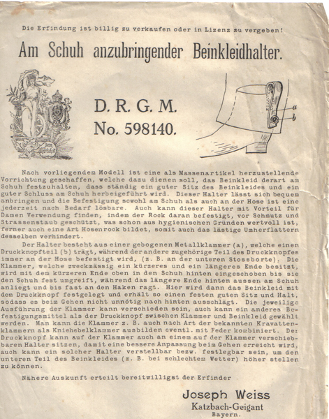 Die Erfindung eines Beinkleidhalters bzw. Hosenschoners beschäftigte den Erfinder das ganze Jahr 1914.