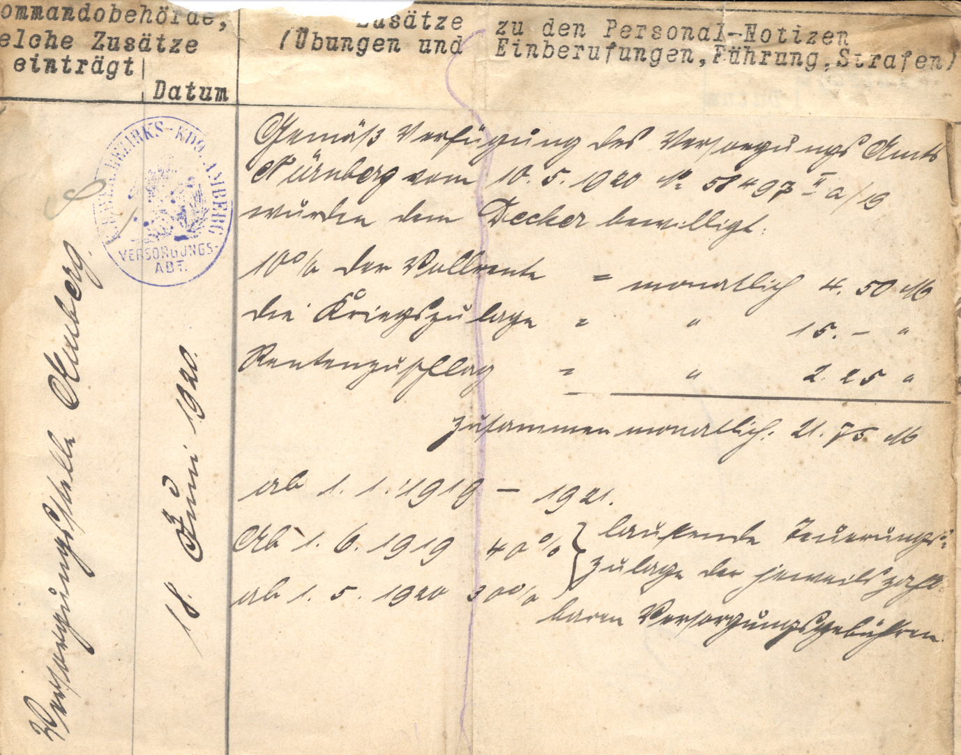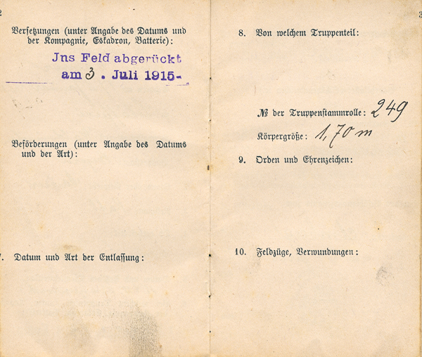 Decker Joseph, Militärpass, Kühnried 1