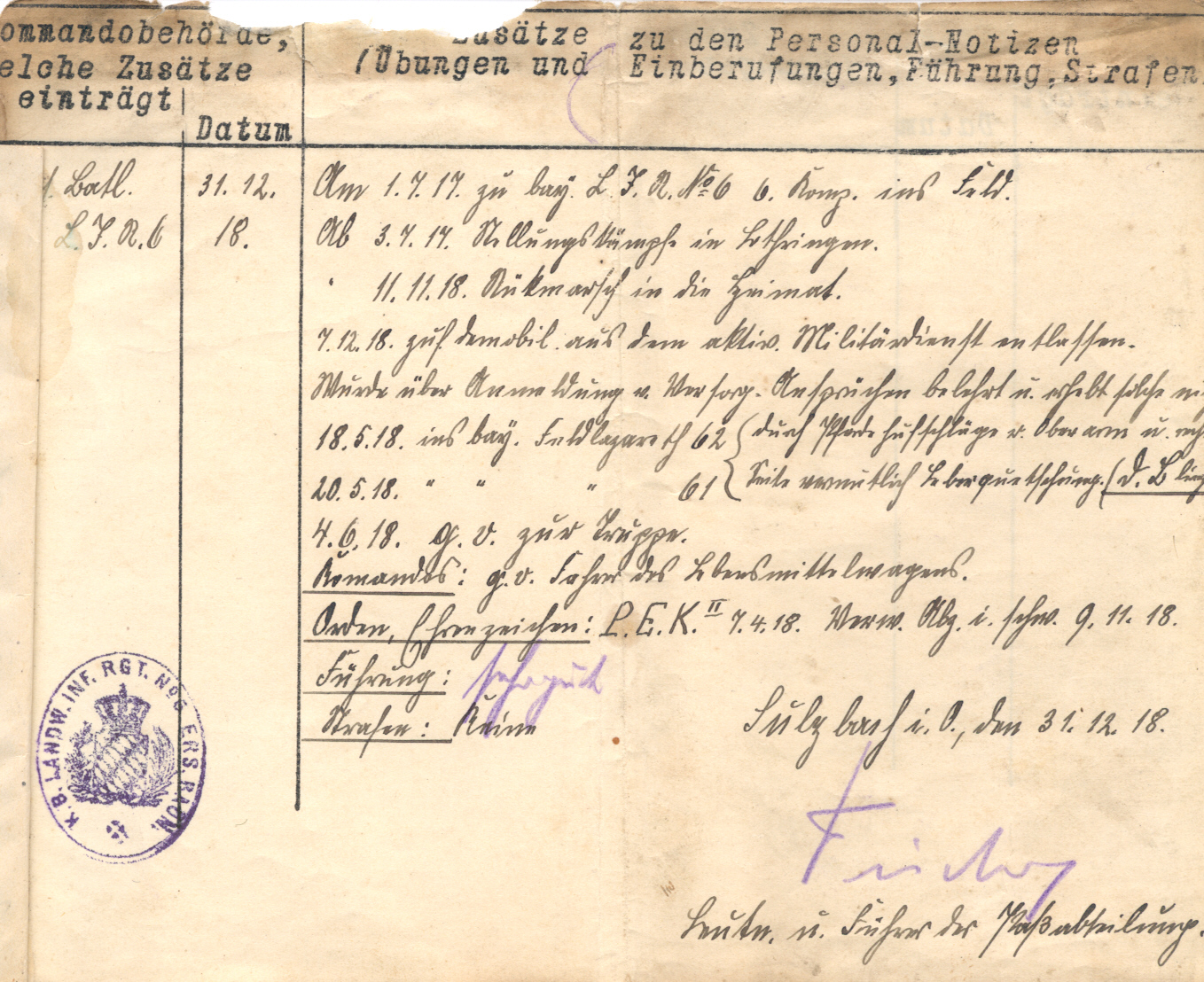 Auch, ob er während des 1. Weltkrieges im Leibregiment verblieb, ist nicht bekannt.