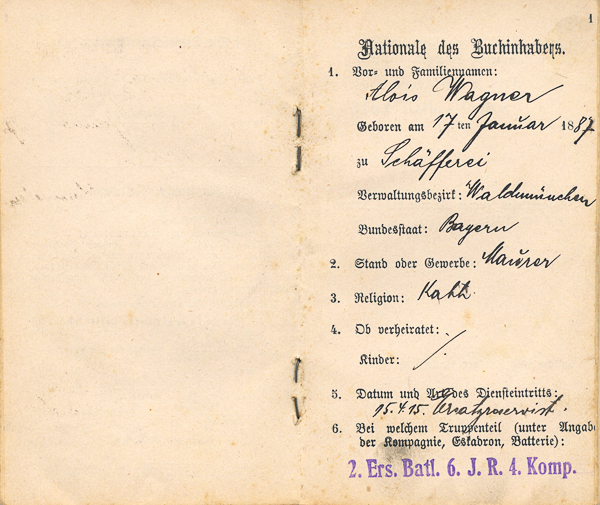 Militärpass Wagner Alois sen., Katzbach 4