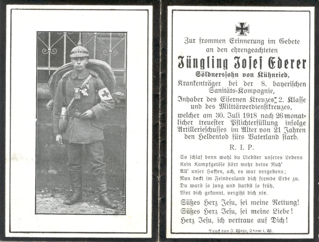 Sterbebild von Josef Ederer, Kühnried 5