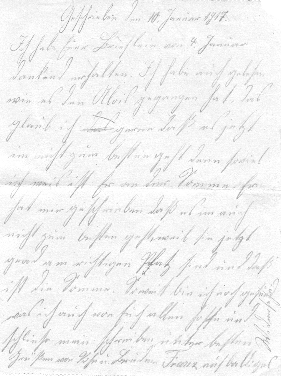 Feldpostbrief von Wutz Franz vom 11. 1. 1917, Katzbach 20