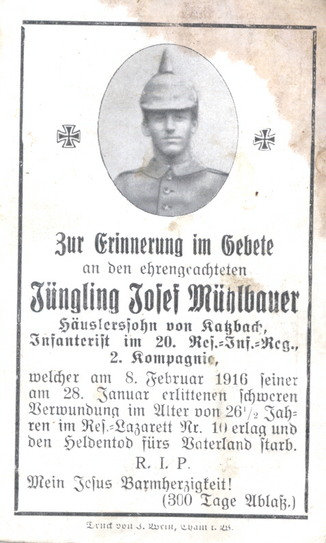 Sterbebild Mühlbauer Josef, Katzbach 2