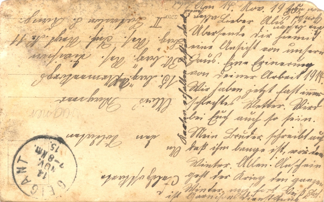Feldpostbrief von Wutz Franz vom 11. 1. 1917, Rückseite, Katzbach 20