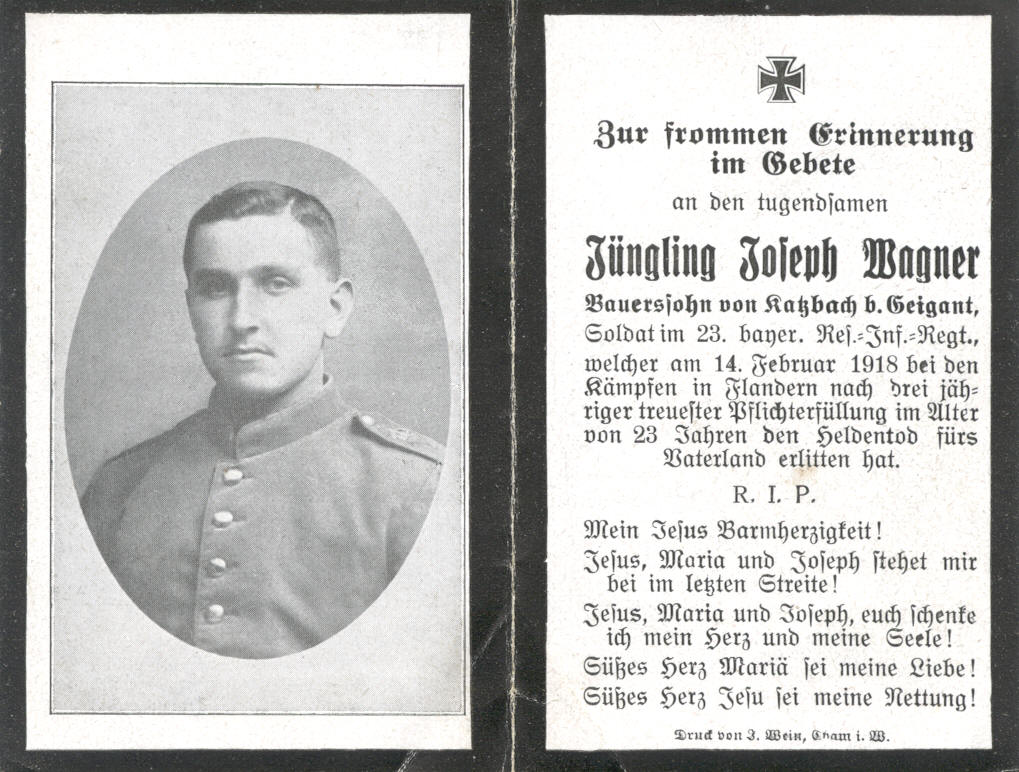 Sterbebild von Wagner Josef, Katzbach 4