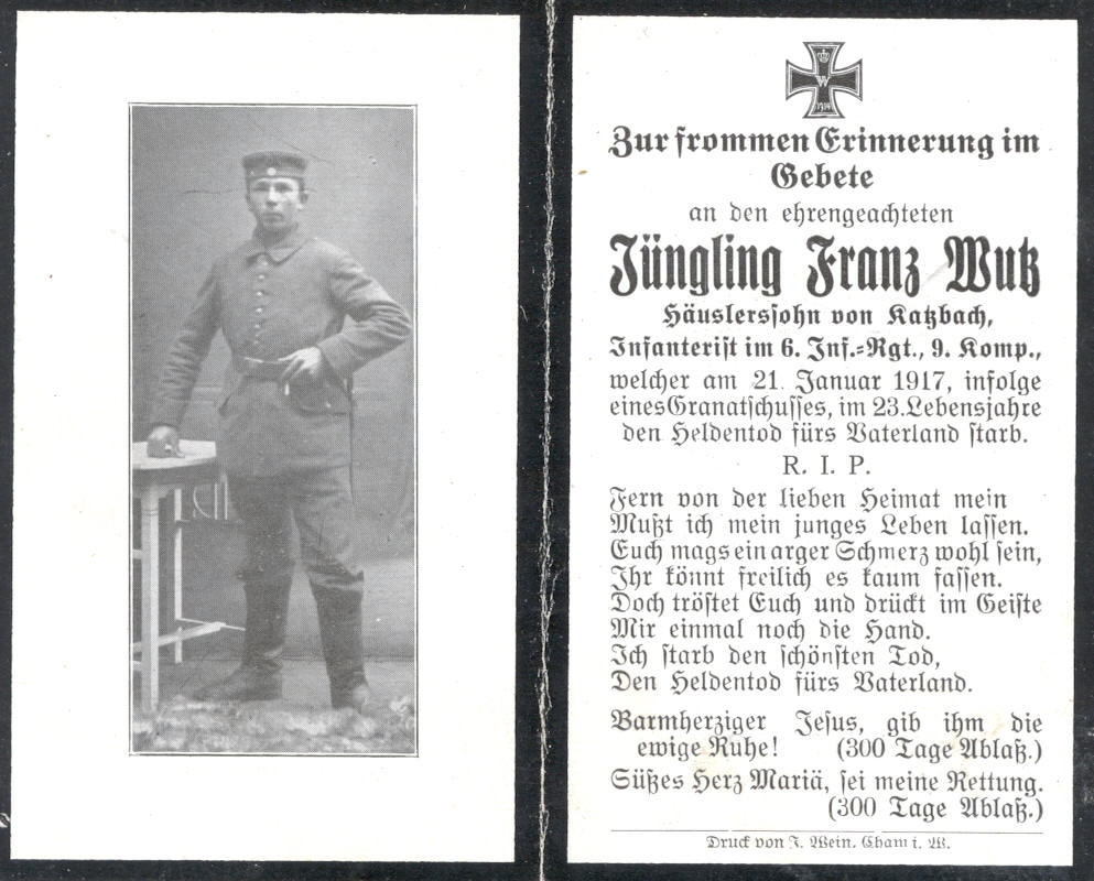 Sterbebild Franz Wutz, Katzbach 20