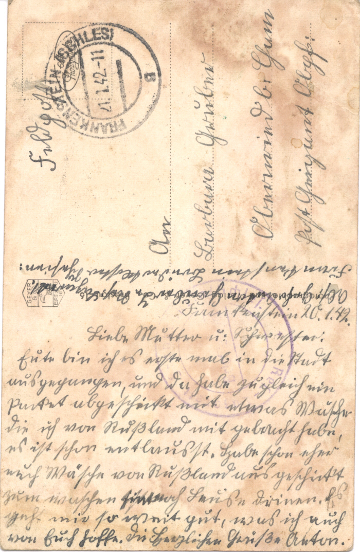 ![]() Feldpostkarte Gruber Anton Katzbach 9 1/2 Rückseite