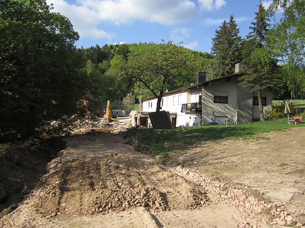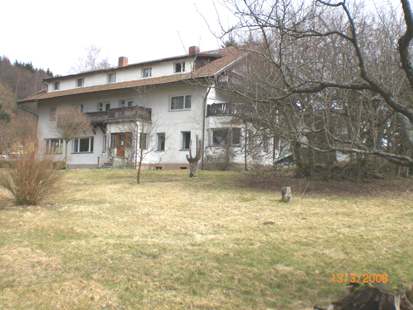 Im folgenden Foto sieht man links unten deutlich den Gemüsegarten, der bis in die 50er Jahre existiert hat, war dann anschließend Parkplatz für die Autos, die das Hotel besucht haben. In diesem Gemüsegarten wurden die aus dem 2. Weltkrieg stammenden Waffen und Munition vergraben bzw. verschüttet, die nach 1945 auf dem Gelände des Gemüsegartens gelagert waren.