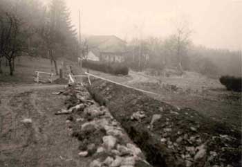 Das Heitbauernhaus im Jahr 1957 beim Wasserleitungsbau für den Rosshof