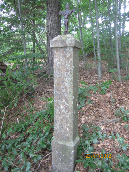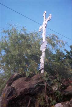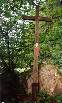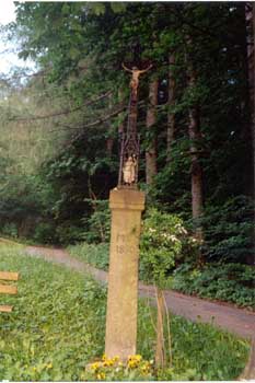 Das Damernkreuz. Es steht auf dem Felsen oberhalb der Mühle auf der Flurnummer 41/009 mit den Koordinaten:
