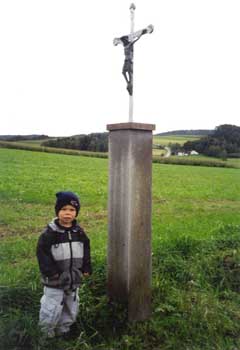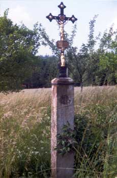 Das Kreuz bei der "Häusl Nanni", beim Anwesen Dirscherl Ernestine und Michael auf der Flurnummer 86/000 Kühnrieder Äcker mit den Koordinaten: