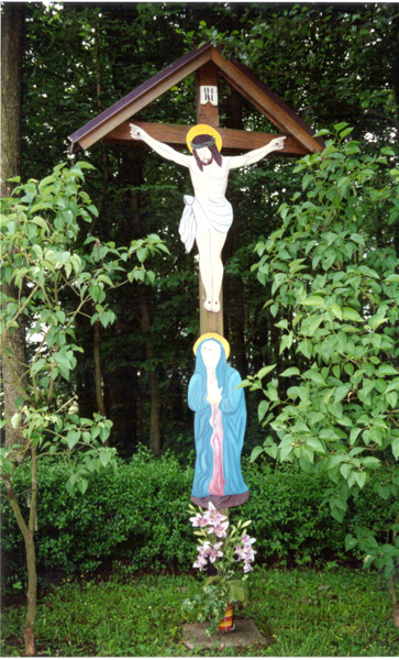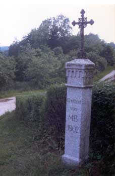 Das Kreuz am Bittgang Geigant-Gleißenberg, oberer Roßhof, oberhalb dem Wohnhaus von Rosmarie (heute Christian) Graf, nunmehr Familie Nachreiner auf der Flurnummer 293/000 Roßhof, mit den Koordinaten: